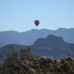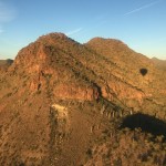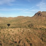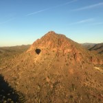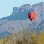 We meet 1 hour before sunrise at the luxurious and beautiful Gold Canyon Golf Resort where you will be greeted by your pilot and ground crew chief. Then, we will take a short drive out to our scenic desert launch site where you will enjoy a beautiful Arizona sunrise as the giant 90,000 cubic foot balloon is inflated. Soon your pilot will ask you to ‘hop in’ and you will gently rise from the desert floor to meet another beautiful Arizona morning! Once in the air, your flight will take you to altitudes that will afford views of the rugged Superstition Wilderness as only can be experienced from the basket of a hot air balloon! Your pilot has spent many years hiking and exploring many of the trails in the Superstition Wilderness and is very knowledgeable of the topography in this area as well as the history in which this area is steeped in. He may even know where the Lost Dutchman goldmine is located! (he probably will not share that much information with you though!). Your pilot will skillfully maneuver the balloon to low altitudes and even spend some time maneuvering within feet of the desert floor. At this time, you may be able to spot wildlife such as javalina, coyote, fox, deer and rabbits. On very rare occasions, we have even seen herds of desert bighorn sheep. Your pilot will also point out the various different forms of plant life that make up this very green and beautiful piece of Sonoran Desert. We typically launch and fly near and just south of the Superstition wilderness boundary, between Gold Canyon and Queen Valley.