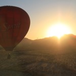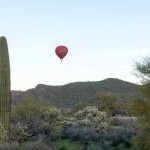 We meet 1 hour before sunrise conveniently near Interstate 17 and Carefree Highway in North Phoenix. From there, we will take a short drive to one of several launch sites, dependant upon the wind direction. As we lift off with the sunrise (just peeking over the distant McDowell Mountains). Lake Pleasant quickly comes into view.
